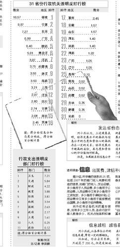 排行榜顯示,北京行政機(jī)關(guān)的透明度在31個(gè)省份中位居第三位,福建和寧夏分列前兩位。
