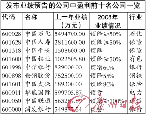 由于去年整體經(jīng)濟(jì)形勢(shì)的影響,上市公司業(yè)績(jī)普遍下滑已成不爭(zhēng)的事實(shí)。根據(jù)天相投顧最新統(tǒng)計(jì),截至25日,滬深兩市共有1009家上市公司披露去年財(cái)務(wù)狀況,其中,在93家公布年報(bào)的公司中,除7家公司虧損外,其余86家公司去年均實(shí)現(xiàn)盈利,而且40家公司去年歸屬于母公司所有者的凈利潤(rùn)實(shí)現(xiàn)增長(zhǎng)。已披露年報(bào)公司2008年實(shí)現(xiàn)歸屬于母公司所有者的凈利潤(rùn)合計(jì)143億元,較上年同期增長(zhǎng)了15.6%。此外滬深兩市916家上市公司發(fā)布了2008年報(bào)業(yè)績(jī)預(yù)告,其中41%的公司為預(yù)增或預(yù)盈。