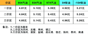 調(diào)整后的成品油價格,南京地區(qū)90#汽油從4.60元/升上調(diào)為4.81元/升,每升上漲0.21元;