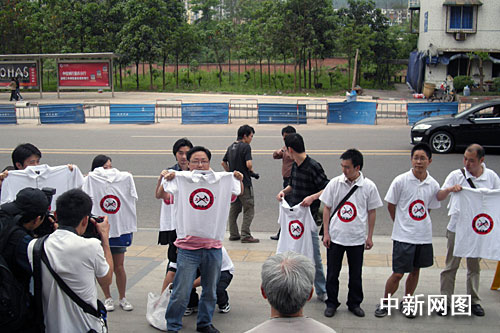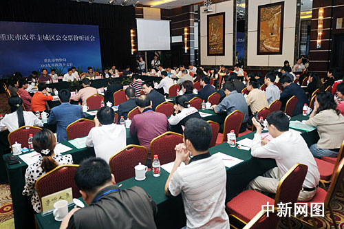 4月17日,重慶市舉行改革主城區(qū)公交票價聽證會,涉及主城800萬市民的出行問題,該市人大代表、市政協(xié)委員、消費者和學生代表在聽證會上發(fā)表了意見。下午聽證會結(jié)束時,十余名重慶市民手舉反公交漲價T恤站在聽證會門口反對漲價,引起眾多參會代表關注。