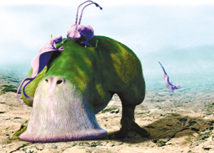 食草動(dòng)物像吸塵器 在霍金的宇宙中,火星、月球等類地行星上生活著兩只腳的食草動(dòng)物。它們能利用吸塵器般的巨型嘴巴從巖石的縫隙中吸食食物。類地行星上還存在類似蜥蜴的食肉動(dòng)物,雙方偶爾爆發(fā)獵食大戰(zhàn)。
