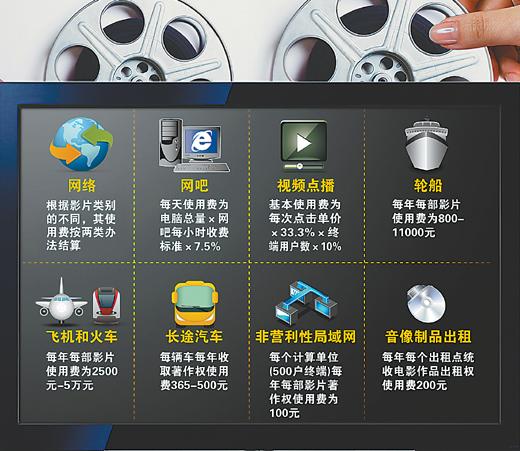 日前,中國(guó)電影著作權(quán)協(xié)會(huì)向國(guó)家版權(quán)局上報(bào)《電影作品著作權(quán)集體管理使用費(fèi)收取標(biāo)準(zhǔn)》,擬向視頻網(wǎng)站、網(wǎng)吧、長(zhǎng)途汽車(chē)等收取電影版權(quán)使用費(fèi)!妒褂觅M(fèi)收取標(biāo)準(zhǔn)》已在國(guó)家版權(quán)局網(wǎng)站進(jìn)行了公示。