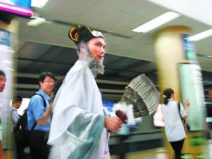 一位還算眉清目秀的年輕男子打扮成諸葛亮的樣子,在地鐵里忽而吟誦,忽而大笑,做出種種引人側(cè)目的動作。這是最近風(fēng)靡網(wǎng)絡(luò)的又一個“神秘人物”。如此裝扮卻為何?是崇拜古人?是有?或者干脆就是網(wǎng)絡(luò)推手在炒作?由于這位“亮叔”手中拿著一本剛上市的新書,網(wǎng)友們懷疑最后一種的可能性最大。