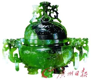 翡翠龍紋環(huán)耳蓋爐(局部)