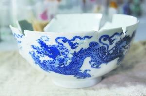 “這件文物就是在我手中獲得重生的!敝驹刚吲随面谜f,她從3月26日開工,拼出來的第一件瓷器就是這個(gè)雙龍戲珠碗。至今,她還清楚地記得,那天剛好是6月16日端午節(jié)。