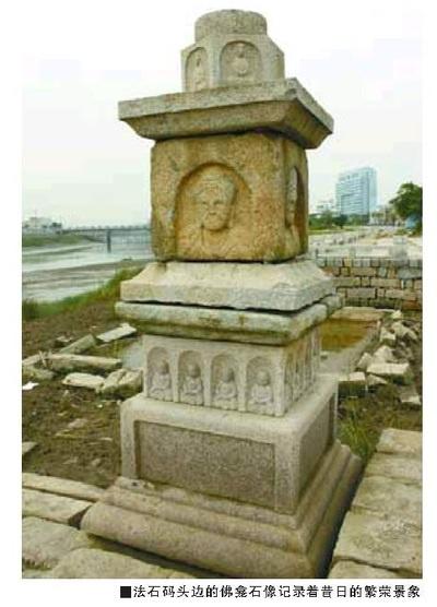泉州曾是海上絲綢之路的起點(diǎn),位于泉州灣晉江出?谔幍南y埔自然擔(dān)當(dāng)了極其重要的角色。蟳埔村外晉江邊上的法石碼頭曾是重要的港口,來自阿拉伯和東南亞的商船均?坑诖。如今這里一片荒涼,只有孤零零佇立在江邊的那一座佛龕石像仿佛向人們?cè)V說著碼頭昔日的輝煌——佛龕上既刻著佛像又刻著西域神像,各種文化曾在這里交融并和諧地共存著。