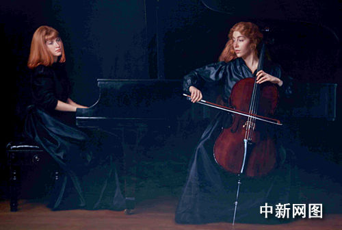 此間業(yè)內人士介紹說,《二重奏》創(chuàng)作于1988年,那年恰是紐約著名的哈默畫廊創(chuàng)立60周年。畫廊策劃了中國著名藝術家特別展作為重大紀念活動。陳逸飛與哈默畫廊合作的初期以創(chuàng)作“中國蘇州水鄉(xiāng)系列”為主,但這顯然這不能滿足他創(chuàng)作的欲望,他喜愛音樂,這一題材理所當然的成為首選。那年10月金秋陳逸飛個展揭幕,他將一批令人震撼的大幅人物肖像油畫新作展現(xiàn)給觀眾,轟動了當時美國藝術界。油畫《二重奏》就是其中最重要的作品之一,開展前即被西方石油公司總裁阿曼·哈默博士收藏。這一系列的作品已在他整個藝術生涯中留下了濃濃的一筆。