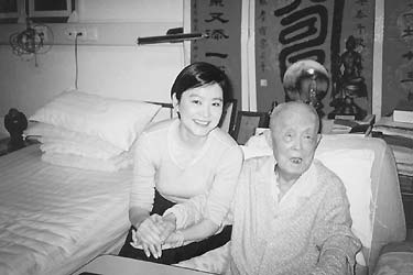 季老對(duì)今天來(lái)訪的客人顯得非常歡迎。他對(duì)楊銳說(shuō):“金教授是搞翻譯的,再拿我論翻譯的書(shū)送給他們!庇谑俏覀?nèi)擞帧俺~”地得到了《季羨林論翻譯》和《非凡人生——季羨林》兩種書(shū),而季老又不嫌麻煩地在這上面簽名。正當(dāng)季老全部簽完名之后,林青霞主動(dòng)握住季老的手深情地說(shuō):“季老,讓我摸摸您的雙手,好感受一下您的文氣,可以嗎?”季老回答:“當(dāng)然可以。”于是,美女明星與文壇大師的雙手疊在一起了,一股幸福之感洋溢在林青霞的臉龐上,而一旁的我和楊銳,連忙照下這個(gè)極有意義的感人鏡頭。那天林青霞和金圣華兩位女士,曾要求以多種姿勢(shì)與季老合拍了好多張照片,季老都一一滿足。我真羨慕兩位女士的運(yùn)氣好,更為季老有這么好心情而感到高興。