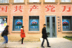 照片:11月2日,北京798藝術(shù)區(qū),參觀者從一處展廳前走過。798藝術(shù)區(qū)原為上世紀50年代蘇聯(lián)援建的電子工業(yè)廠區(qū)。自2002年起,大批藝術(shù)家開始涌入,使這里逐漸發(fā)展成為國內(nèi)最具國際影響力的當代藝術(shù)區(qū)。(記者者 文靜 陳劍攝)