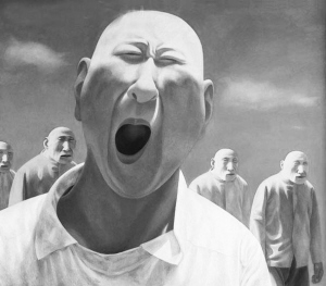話題是從他“窮得要死”的時(shí)候說(shuō)起的。方力鈞1963年出生在河北邯鄲!拔母铩敝,父親不許他外出而閉門(mén)在家里學(xué)畫(huà)。特殊的環(huán)境養(yǎng)成他的“倔脾氣”。中專時(shí),學(xué)校規(guī)定不許留長(zhǎng)發(fā),于是他便和幾個(gè)挨批評(píng)的同學(xué)一起把頭發(fā)剃個(gè)精光。這個(gè)情結(jié)是否孕育了他日后的畫(huà)風(fēng)不得而知,而他自己的解釋是,光頭有點(diǎn)叛逆,但又含義曖昧,和尚光頭,犯人也光頭。他選擇畫(huà)光頭,是因?yàn)檫@樣可以模糊個(gè)差異性,而突顯人的整體象征意義。