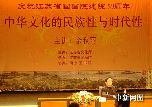 十一月二十一日下午,為慶祝江蘇省國畫院建院五十周年,著名文人余秋雨應(yīng)邀來到南京圖書館,在這個(gè)“既美麗又有文化涵養(yǎng)”的城市,為公眾做了一場題為《中華文化的民族性與時(shí)代性》的演講。演講縱覽中國五千年里歷史,圍繞中華文化特征,闡述了文化力量在當(dāng)代中國民族振興、時(shí)代發(fā)展中的意義。