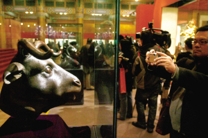 昨天,首屆文物博覽會在北京飯店金色大廳開幕,首次在博覽會上集體亮相的圓明園四獸首成為眾人矚目的焦點。