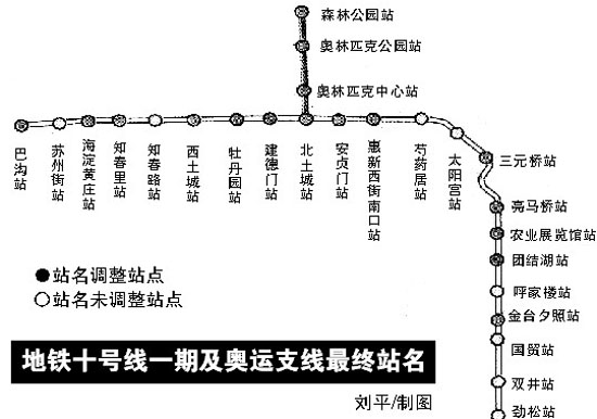 記者對比此前公布的站名后發(fā)現(xiàn),最終確定的站名版本發(fā)生了很大變化,十號線一期共有14座站名發(fā)生變化,奧運(yùn)支線沿線站名則全部“變身”。