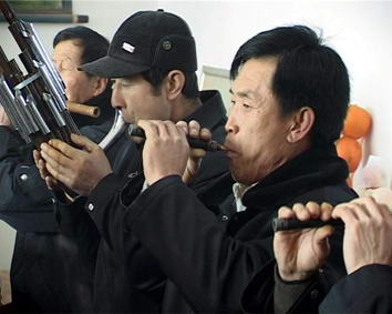 蔡玉潤(rùn)說(shuō),高洛是個(gè)文化村,早年間,劇團(tuán)、舞獅、音樂(lè)會(huì)等娛樂(lè)活動(dòng)大家都樂(lè)意參加,尤其是音樂(lè)會(huì),幾乎家家都參加過(guò)。雖然參加的人多,但是,能真正參加樂(lè)團(tuán)的不多,記譜就是個(gè)坎兒啊,很多人都知難而退了。后來(lái),整個(gè)音樂(lè)會(huì)的骨干成員只剩下不到十個(gè)人,其中年紀(jì)最大的已經(jīng)七十四歲,最小的也年近五十歲。近年來(lái),在國(guó)家的支持和幫助下,高洛音樂(lè)會(huì)又重新煥發(fā)了生機(jī)。目前,音樂(lè)會(huì)會(huì)員已經(jīng)發(fā)展到現(xiàn)在的二十五人。