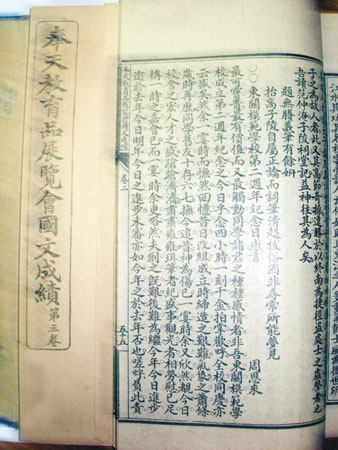今天(3月5日)是敬愛的周恩來(lái)總理誕辰110周年,為紀(jì)念這個(gè)特別的日子,3月4日,沈陽(yáng)著名收藏家詹洪閣首次向沈陽(yáng)日?qǐng)?bào)展示了83年前由奉天圖書發(fā)行所印發(fā)的《奉天教育品展覽會(huì)國(guó)文成績(jī)》四冊(cè)一套的圖書,他小心翼翼地翻開了該書介紹說(shuō):“你看,這套書的第二卷55頁(yè)、56頁(yè)上,刊登了周恩來(lái)在沈陽(yáng)讀書時(shí)所寫的一篇作文《東關(guān)模范學(xué)校第二周年紀(jì)念感言》。據(jù)我了解,這是目前所發(fā)現(xiàn)的周恩來(lái)最早的一篇文章!