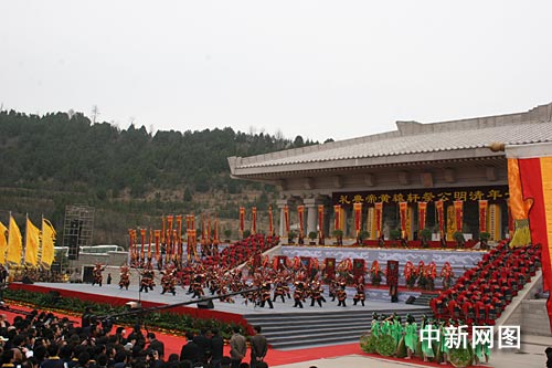 全國(guó)人大常委會(huì)副委員長(zhǎng)華建敏、全國(guó)政協(xié)副主席張榕明、澳門(mén)特首何厚鏵等高級(jí)官員出席了今天的公祭軒轅黃帝典禮。陜西省省長(zhǎng)袁純清恭讀了祭文。來(lái)自中央二十幾個(gè)部委,中國(guó)三十一個(gè)省直轄市、自治區(qū),港澳臺(tái)及海外代表共計(jì)八千余人參加了祭祀儀式!饵S帝祭祀大典圖志》也在儀式上舉行了首發(fā)式。