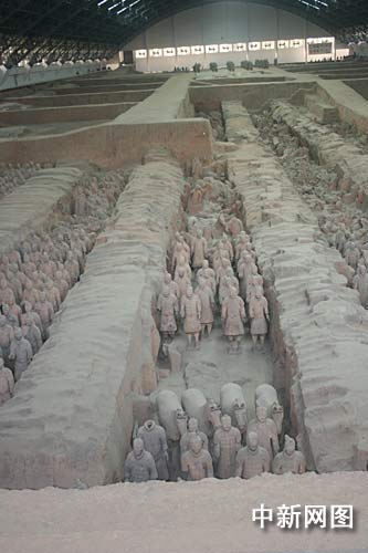 組圖:網(wǎng)媒記者與秦始皇陵兵馬俑“親密接觸”