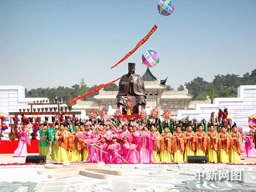 泰伯為吳地先祖,其“三讓天下”的高風亮節(jié)和開發(fā)江南的豐功偉績,為吳地人民世代敬仰。今天在無錫新區(qū)鴻山鎮(zhèn)吳文化廣場的泰伯墓前,五大洲的吳氏至德宗親身佩黃絲帶,在鏗鏘悠揚的祭祀樂舞中,向開啟吳地三千年文明史的先祖敬獻花籃,虔誠祭拜,盛大的祭祀表演在春光明媚中盡情向海內(nèi)外賓客展示悠久燦爛的吳地文明以及無錫與世界“同根同源、同祖同宗”的文化自豪感。