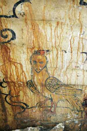 永川區(qū)文管所研究員王昌文認(rèn)為,從畫風(fēng)來看,該墓屬唐時(shí)風(fēng)格,但從墓室的其他特征來看,這應(yīng)該是一座明代墓,因?yàn)樵谀故野l(fā)現(xiàn)了明代典型的隨葬物品:分立于墓室兩側(cè)的四只瑞獸,一個(gè)谷倉罐和另外一只陶罐。而墓室的構(gòu)建也是典型的明代風(fēng)格。