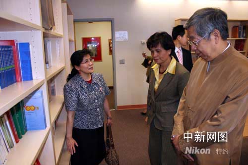 許嘉璐、許琳等參觀埃德蒙頓孔子學(xué)院教學(xué)樓。中新社記者呂振亞攝
