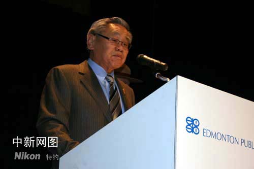 艾伯塔省省督林佐民(Norman Kwong)致辭祝賀孔子學(xué)院落戶埃德蒙頓。中新社記者呂振亞攝