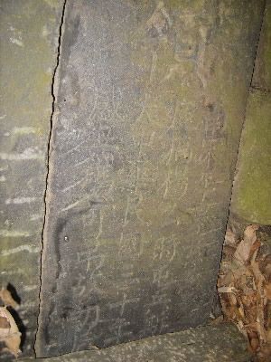 在李爹爹的帶領(lǐng)下,考古人員一行前往樹(shù)木蒼郁的牛皋嶺。山路上滿是雜亂的樹(shù)草,路面十分崎嶇而又濕滑。在一處名叫解放堰的小水庫(kù)邊,考古人員發(fā)現(xiàn)水庫(kù)的石堰是由很多塊青石板筑成,其中有一塊長(zhǎng)約2米、寬約0.2米的石條上刻有“牛皋嶺”三個(gè)大字,大字下面刻有“南宋牛皋岳家軍之……”、“庭摛楊幺時(shí)屯兵斯……”、“大中華民國(guó)三十年……”等字樣,字跡有些模糊,但部分仍能清晰辨認(rèn)。據(jù)介紹,該石碑是1941年國(guó)民黨軍官歐震派人從“牛皋墓”那里抬來(lái)的,并在上面刻下了“牛皋嶺”的字樣。1949年解放的時(shí)候,村里修建水庫(kù)缺少石料,就將這塊石碑用來(lái)修石堰了,之前在抗日戰(zhàn)爭(zhēng)時(shí)期,“牛皋墓”也遭到很大程度的破壞。