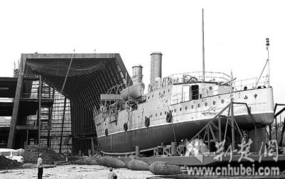 5月16日,在悲壯沉沒70周年之際,全國(guó)最大的可移動(dòng)文物--中山艦,在自己的殉難地金口,正以氣囊助艦體向中山艦博物館緩慢移動(dòng)。中山艦博物館位于金口江邊的金雞湖畔,其主體鋼結(jié)構(gòu)工程已經(jīng)完工。該館位于中山艦旅游區(qū)內(nèi),是武漢第一座公園式博物館。這里三山環(huán)抱,襟江帶湖,核心景區(qū)面積3.3平方公里,博物館主體建筑與牛頭山上的中山艦抗日陣亡將士紀(jì)念碑遙相呼應(yīng),場(chǎng)景非常壯闊。1938年10月24日,中山艦巡航武漢江夏區(qū)金口水域時(shí),突遇日軍6架飛機(jī)轟炸,沉沒長(zhǎng)江,艦長(zhǎng)薩師俊和其余24名官兵陣亡。1997年,經(jīng)過78天打撈,中山艦在金口水域出水,重見天日。 中新社發(fā) 孫新明 攝