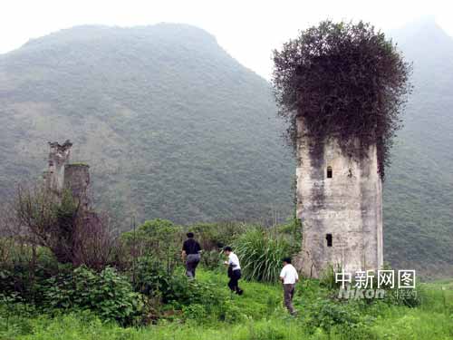 記者日前與許化鵬等人來到了史料中記載的朱德祖居地——離韶關(guān)時區(qū)約70公里的乳源縣東坪鎮(zhèn)梯下朱家隴村。上世紀(jì)50年代,當(dāng)?shù)匦藿ㄋ畮欤倌昵暗闹斓伦婢拥乇凰蜎]。近期水庫水位不高,昔日的斷壁殘垣呈現(xiàn)眼前。因方圓幾公里早已無人居住,一眼望去,整個朱家隴村顯得有些荒涼。只有那被歲月熏黑的殘壁、爬滿青藤的古堡,在荒草的掩映下依然飄散著遠(yuǎn)古的氣息。而一片片潔白的蘆葦和風(fēng)輕舞,似乎在在吟唱著悠遠(yuǎn)的歌謠。