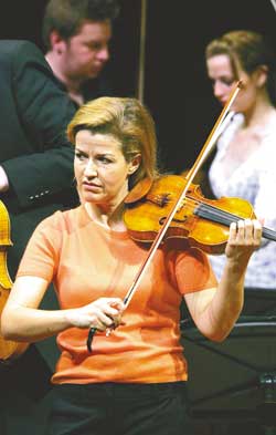 昨晚,享譽世界的“小提琴女神”安妮-索菲·穆特首次登臺國家大劇院,與來自挪威的特隆赫姆獨奏家樂團合作演出。在演出結尾,她加演了巴赫的《G弦上的詠嘆調》,將對四川地震災區(qū)的祝;髁耸嵍烂畹囊舴。