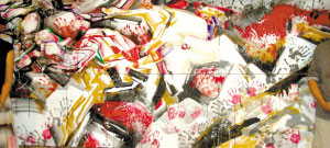 病中完成巨幅汶川悼亡作品《不忍》,捐贈(zèng)給廣東美術(shù)館展出,作品兩邊準(zhǔn)備白紙給觀眾印手印