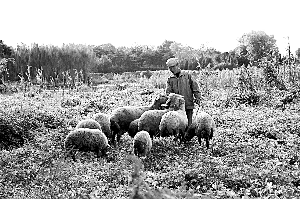 1986年圓明園北遠(yuǎn)山村住戶在放羊。