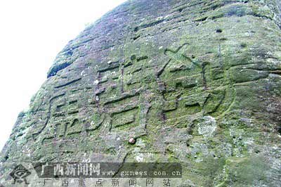 日前,在南寧市良慶區(qū)那陳鎮(zhèn)那徐村蕾帽嶺石壁上,文物工作者發(fā)現(xiàn)多處清朝光緒九年(1883年)的摩崖石刻。