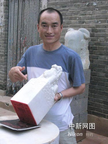 據(jù)了解,“平安中國印”由曲陽縣著名藝人龐少賢歷時(shí)兩個(gè)月手工雕刻而成。龐少賢說,印章在中國傳統(tǒng)文化中代表著吉祥和平安。今年在中國發(fā)生了冰凍災(zāi)害及汶川大地震等自然災(zāi)害,國家和人民損失重大。作為一名雕刻藝人,他決定做一枚“平安中國印”,以此來祈福中國吉祥、平安。