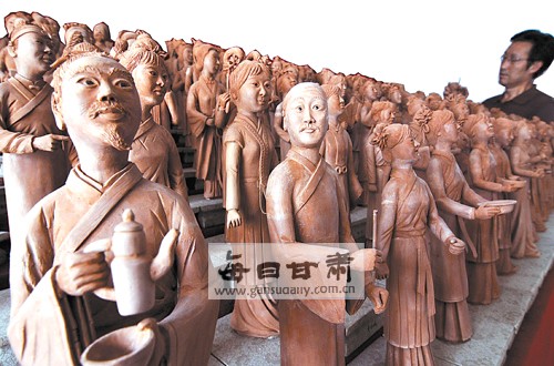 黛玉葬花、晴雯撕扇,富態(tài)的賈母、憨厚的劉姥姥……7月12日,120位古典名著《紅樓夢(mèng)》中的經(jīng)典人物,在曹雪芹的帶領(lǐng)下,活靈活現(xiàn)地展現(xiàn)在記者面前。這些被刻畫得栩栩如生的泥塑作品都出自蘭州軸承廠的一位普通工人王議誠之手。
