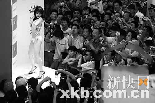 據(jù)上海媒體的報道稱:“現(xiàn)場一個個嫵媚的AV女優(yōu)搖擺著腰肢,擺著一個個撩人的姿勢,眼神里迸射著誘惑的目光,霎時,相機喀嚓聲響成一片。性感AV女優(yōu)的火爆演出,使得展臺前的人流絡繹不絕,大有水泄不通的陣勢”。相比情趣內(nèi)衣的“含蓄”來說,日本這家企業(yè)造勢活動儼然成為整個成人健康展的一大亮點,吸引了眾多在場觀眾的眼球,各路拍攝器材各顯神通,手機、數(shù)碼相機、攝像機爭相記錄著“秀色盛典”。