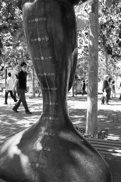 北京街頭的藝術雕塑,標示著人體的主要穴位。