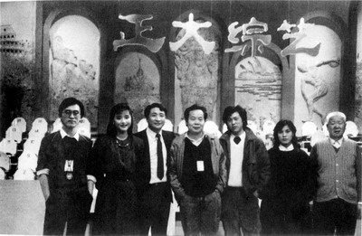 姜昆在主持《正大綜藝》節(jié)目時(shí)與楊瀾等工作人員留影。