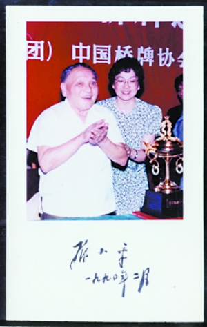 1990年,我更榮幸地得到了一次“特殊待遇”——那是6月23日,中國(guó)橋牌協(xié)會(huì)陳澤蘭同志打電話給我:“老馮,下午有重要活動(dòng),備好相機(jī),兩點(diǎn)半到人民大會(huì)堂!