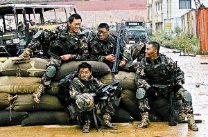 李洋:我們看這個問題不能僅僅從藝術(shù)角度看,西方看這個問題,是超越藝術(shù)的軍事思考。今年初,八一廠拍的《戰(zhàn)爭目光》剛一播完,美國的官方網(wǎng)站上立即發(fā)生了兩種不同意見的激烈交鋒。一種意見認為:藝術(shù)表現(xiàn)的是實踐,中國軍隊已具備了相當(dāng)?shù)男畔⒒鲬?zhàn)能力。另一種意見則認為:藝術(shù)就是藝術(shù),這肯定是中國藝術(shù)家一種假想的東西。雙方的激烈交鋒持續(xù)了很長時間,其中一方的代表人物還是美國國務(wù)院智囊機構(gòu)的高級專家。一部藝術(shù)作品能掀起如此巨大的波瀾,甚至影響到外界對中國的軍力評估,這是超乎我們想象的。我常想,這是否就意味著我們常說的藝術(shù)是戰(zhàn)斗力的組成部分呢?其實,作為文藝作品,我們所表現(xiàn)的有些是“未來時態(tài)”,記得2002年我們啟動《DA師》創(chuàng)作的時候,美國的第一支數(shù)字化師才剛剛宣布成立。
