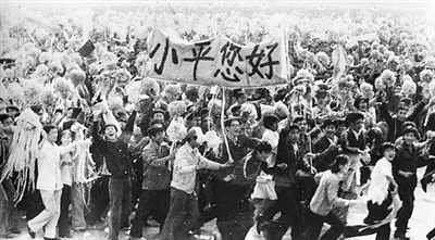 過了幾天,據(jù)說有新華社記者來北大生物系采訪我們,老師一時(shí)很緊張,后來記者對(duì)他們說這是一件好事。那時(shí)信息不像現(xiàn)在這么快,后來才得知10月2日人民日報(bào)第二版刊登了我們舉著“小平您好”橫幅的照片,是人民日報(bào)攝影記者王東老師拍攝的。至此,我們心里才踏實(shí)下來。
