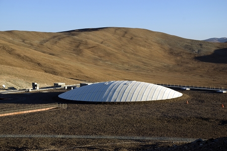 影片的高潮發(fā)生在智利的歐洲南方天文臺,這里邦德和他的對手展開了最后的殊死搏斗。該天文臺位于阿塔卡馬沙漠中海拔2400米的山峰上,由德國建筑師奧爾和韋伯設(shè)計,條紋狀表面的建筑物埋藏在荒蕪的沙漠下,由玻璃圓頂采光照亮室內(nèi)的花園和游泳池。由于該建筑坐落在非常偏僻的地方,人們很難有機會親臨現(xiàn)場,因此這部電影是欣賞這座建筑物的絕好機會。有動感的混凝土外表面、泥土色調(diào)的內(nèi)表面、深深的內(nèi)部透視空間,還有精致的細節(jié)……最后,觀眾將從鏡頭里看到它毀滅殆盡。