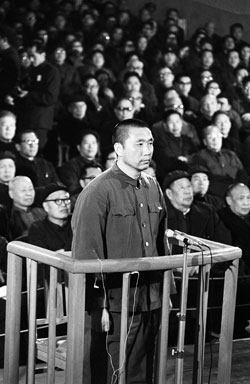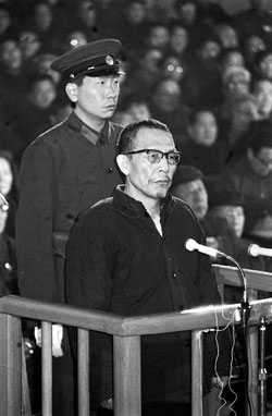 1980年11月20日下午3 時(shí)整,北京正義路,審判林彪、江青反革命集團(tuán)案特別法庭庭長(zhǎng)江華宣布開(kāi)庭。10名主犯受審。