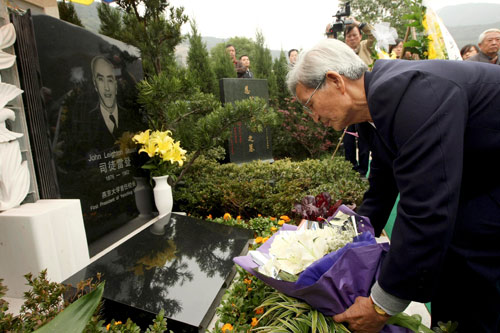 來(lái)自北京、上海、杭州等地燕京大學(xué)校友代表參加了十七日的安葬儀式。燕京大學(xué)校友會(huì)北京校友代表國(guó)仲元先生把一捧潔白的百合花輕輕地放在墓碑前:“老校長(zhǎng),您安息吧!