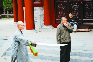 今年過(guò)34歲的釋延康是少林寺武僧團(tuán)總教練。在2002年10月,俄羅斯有關(guān)方面邀請(qǐng)少林寺派遣武僧到莫斯科傳授少林功夫。釋延康受命前往,直到2003年7月才回國(guó)。