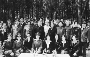 親屬代表團(tuán)在毛岸英烈士墓前。毛岸英像左側(cè)依次為劉松林、邵華、李天策;右側(cè)依次為李敏、李訥、王景清。 尚效文攝