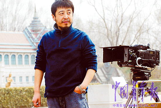 照片:賈樟柯在拍片現(xiàn)場 本報(bào)記者 賀延光攝
