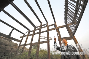 記者在現(xiàn)場看到,劉伯承舊居掩映在一片雜草中,一樓一底,面積約100平方米。屋頂是瓦片,已有一半被揭掉了,只剩下幾根碗口粗的圓木棒裸露在天空下。房間為穿斗木結(jié)構(gòu)建筑,二樓的木質(zhì)窗戶雖已殘缺不全,但剩下部分仍顯出具有巴渝民間建筑特色的雕花窗格。