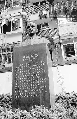 11月23日,星期天。杭州市下城區(qū)耶穌堂弄的基督教會天水堂里,像往常一樣傳出基督教徒們唱詩的聲音。司徒雷登的父親曾于1875年開始擔任這個教堂的主持。如今,司徒雷登的半身塑像,正立在距離教堂大約百米的堂弄里,那里也是他故居所在的位置。塑像對面的長凳上,一位納著花鞋墊的中年婦女,正與人湊在一起說著家庭瑣事。問及司徒雷登這個名字,她們搖了搖頭,對6天前已經舉行的下葬儀式,她們更是一無所知。
