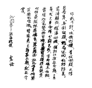 《沁園春·淮海戰(zhàn)役》詞,內(nèi)容如下:“作戰(zhàn)方針,攻城打援,首占開封。又俘區(qū)壽年,再創(chuàng)敵援;戰(zhàn)局過坳,敵轉(zhuǎn)防御。兗濟解放,徐海動搖,橫掃江淮在今朝。十月節(jié),我大軍南揮,分割包抄。首殲?zāi)肭f伯韜,看徐雙甕鱉哪里逃。笑緯國東援,損兵徒勞;雙堆黃維,稱蔣嫡系,覆滅于后。杜氏將軍,傾巢突圍也難逃。時迫矣,滅蔣家王朝,就在今宵。”(粟裕的遺作手跡見上圖)
