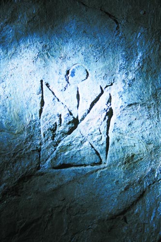 剛結束的考察中,專家對目前發(fā)現(xiàn)的3000多幅圖案中的約500幅進行研究,將其分為巖畫和巖刻符號兩大類。幾幅可以辨認的巖畫分別表達了人物、天、地的含義;巖刻符號,由于數(shù)量較多、內(nèi)容復雜,暫時按形態(tài)分作9類22式,它們多為洞穴狀刻符,有數(shù)量關系,且多為6或6的倍數(shù)。